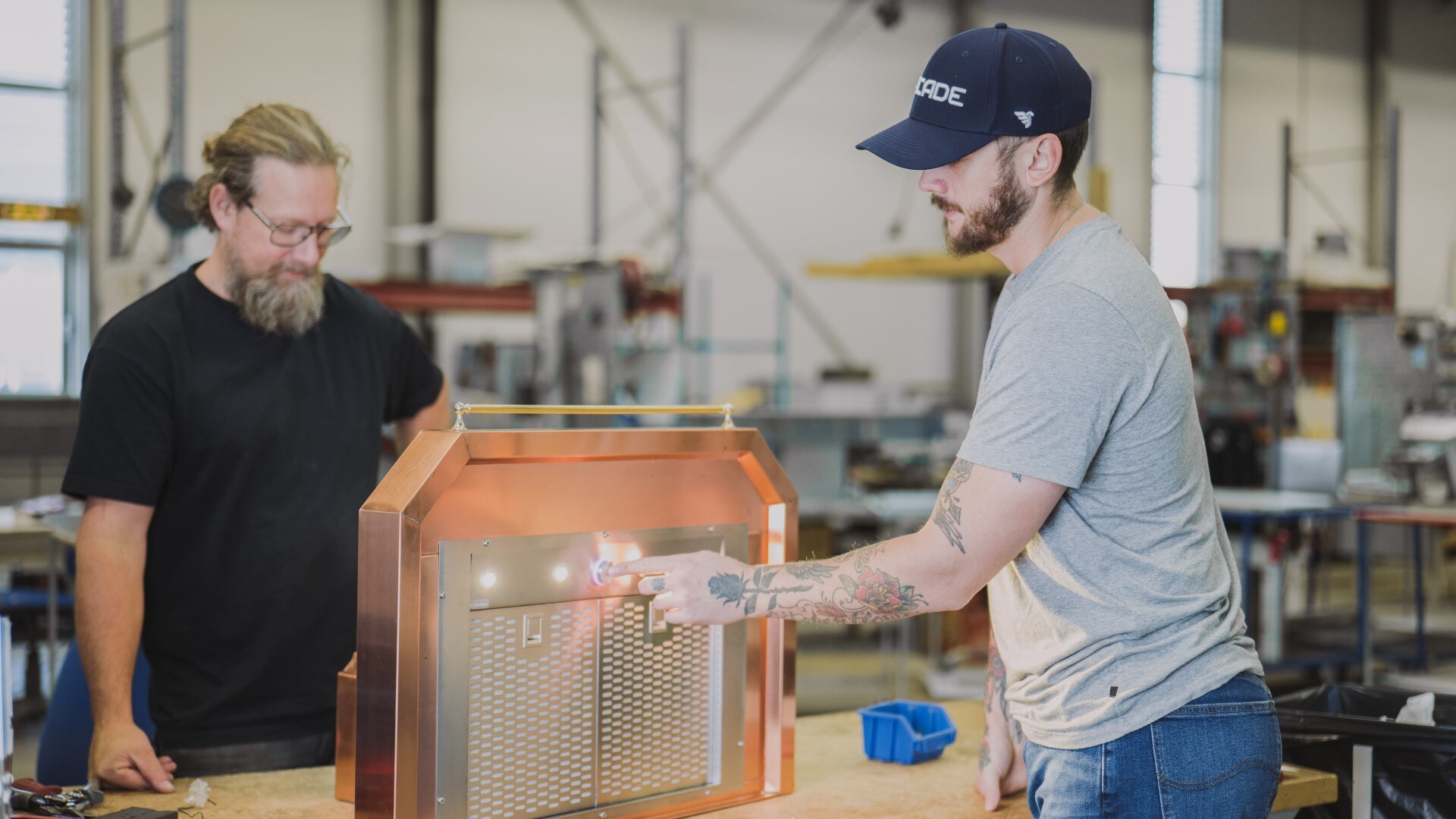 I slutet av förra året kontaktades vi av paret som under denna långa tid varit med än nöjda med sin köksfläkt, men som nu insett att de gamla delarna inuti kåpan börjat bli gamla och uttjänta. Men att byta ut resultatet av det gedigna hantverket, som nu blivit en del av husets själ, var något man varken ville eller tyckte var nödvändigt.